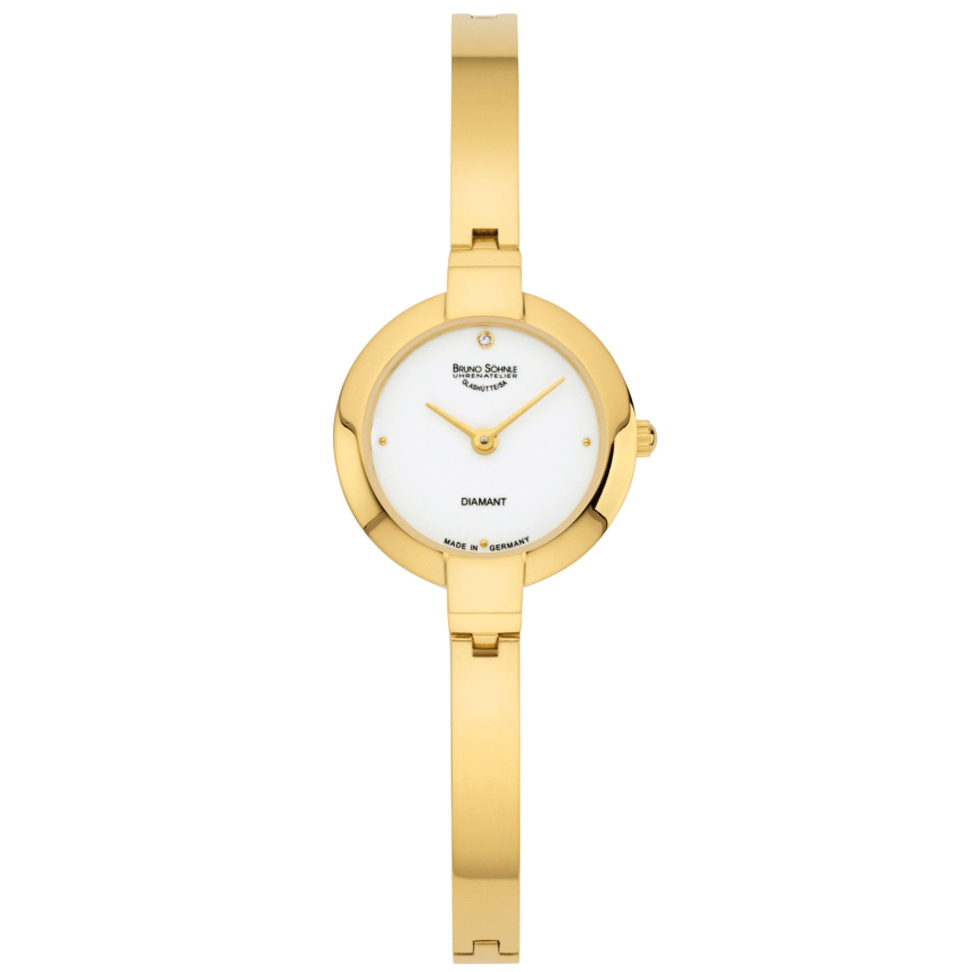 Die Bruno Söhnle Glashütte Latina III 17-33220-952 ist eine elegante Damenuhr in goldfarbener Ausführung, die sich harmonisch wie ein zierlicher Armreif am Handgelenk präsentiert. Dieses edle Schmuckstück verbindet präzise Uhrmacherkunst mit zeitloser Ästhetik und ergänzt perfekt Ihren Goldschmuck. Ideal für Frauen, die Wert auf hochwertige Verarbeitung und zurückhaltende Eleganz legen.