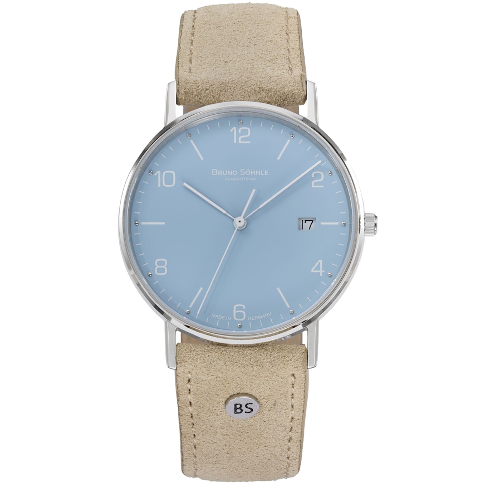 Die Bruno Söhnle Glashütte/Sa. Rondo 17-13105-323 verbindet klassische Uhrmacherkunst mit modernem Design und präsentiert sich mit einem exklusiven babyblauen Zifferblatt. Mit einem Durchmesser von 38 mm eignet sich diese Armbanduhr gleichermaßen für Herren und Damen, die Wert auf zeitlose Eleganz und dezente Farbgebung legen. Die Fusion aus traditioneller Handwerkskunst aus Glashütte und frischem Stil macht sie zu einem hochwertigen Begleiter für jeden Anlass.