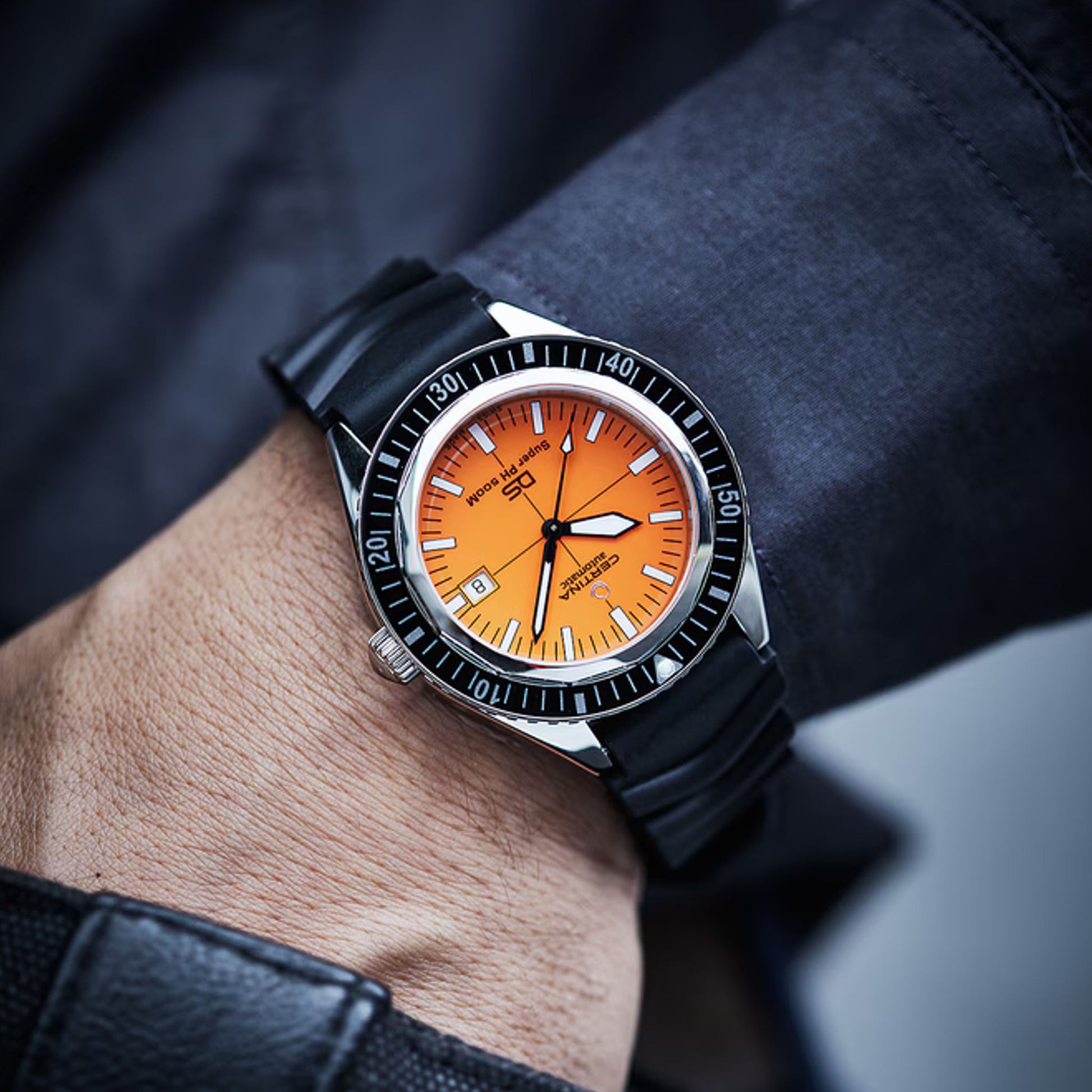 Die Certina DS Super PH500M ist eine automatische Taucheruhr für anspruchsvolle Abenteurer. Mit dem zuverlässigen Powermatic 80 Uhrwerk und einer Wasserdichtheit bis 500 Meter bietet sie optimale Leistung in extremen Bedingungen. Das robuste DS-Konzept (Doppelte Sicherheit) garantiert Langlebigkeit, während das maskuline Design und das praktische Datumsfenster tägliche Funktionalität mit Eleganz verbinden. Eine Uhr für Unterwassererkundungen, die Präzision und Zuverlässigkeit vereint.