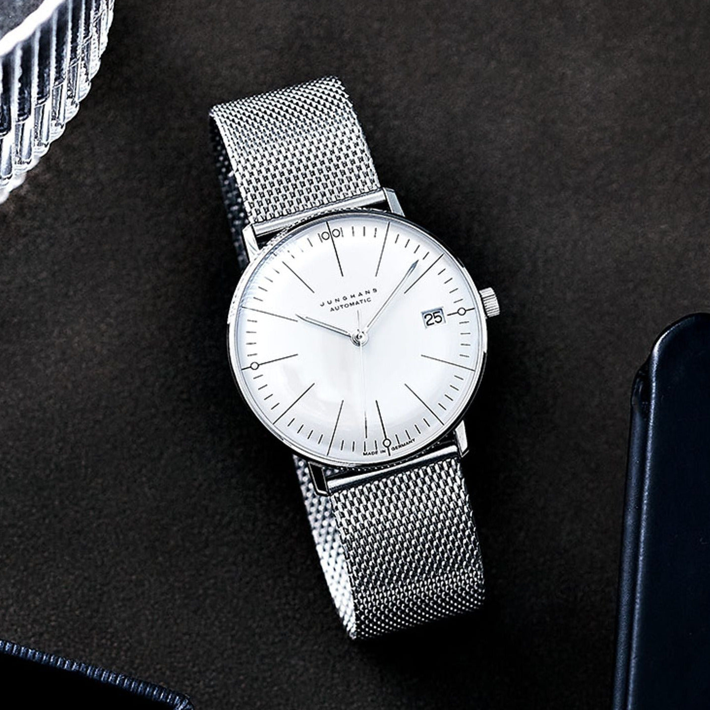 In der Größe und Gestalt des Originals – mit der Ausstattung von heute: In der neuen max bill Kleine Automatic von Junghans spiegeln sich sechs Jahrzehnte großartigen Uhrendesigns wider. Mit einem Gehäusedurchmesser von 34 Millimetern haben diese exakt die Größe des Originals von 1961. Und verfügen dank Saphirglas, einer Datumsanzeige auf dem minimalistischen Zifferblatt sowie einem Automatikwerk über eine komfortable Ausstattung. Somit stehen diese Modelle für die perfekte Verbindung von Schönheit und Gebrauchswert.