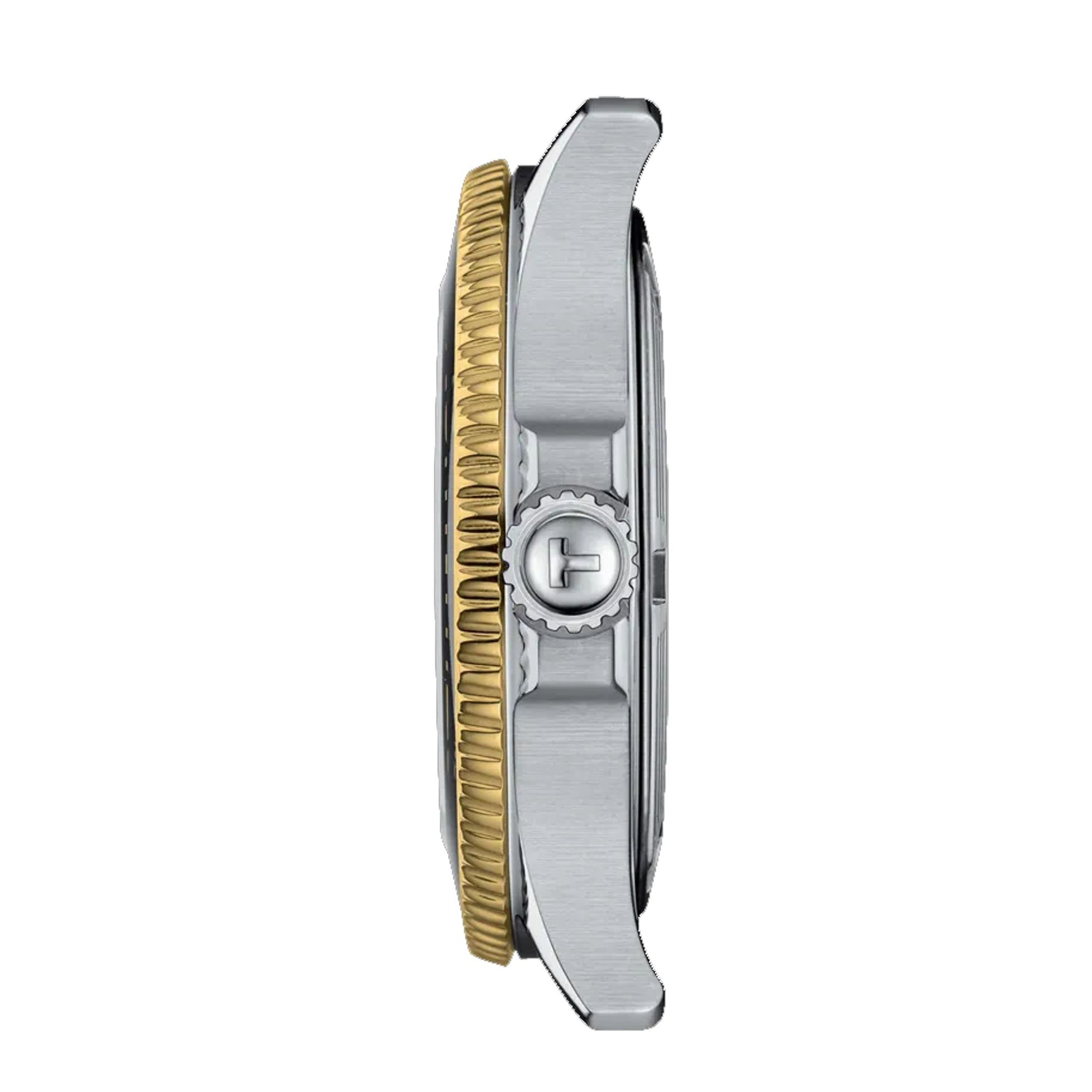 Die TISSOT Seastar 1000 36mm vereint Funktionalität und Eleganz in einem kompakten Design. Mit ihrer drehbaren Lünette und dem robusten Edelstahl-Bicolor-Gehäuse ist diese Damenuhr der ideale Begleiter für sportliche Aktivitäten und den Alltag. Die 300m Wasserdichtigkeit macht sie zur zuverlässigen Taucherin, während das moderne Zifferblatt zeitlose Eleganz ausstrahlt. Ob beim Wassersport oder im Büro – diese Allrounderin besticht durch ihre Vielseitigkeit und das bewährte Schweizer Handwerk von TISSOT.