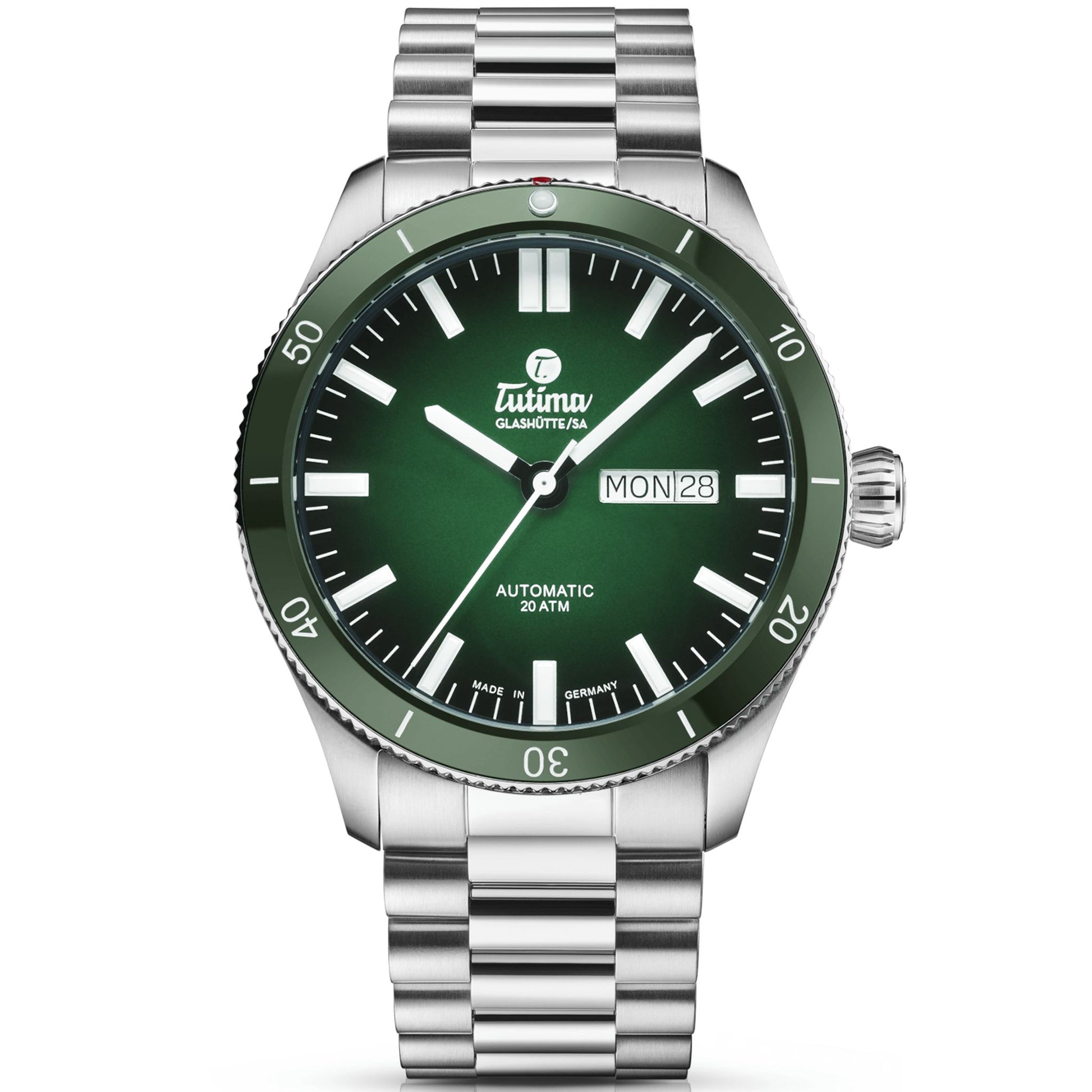 Tutima Glashütte/Sa. Uhren werden stets in den jeweiligen, originalen Uhrenboxen,inkl. sämtlicher Anleitungen, Unterlagen des Herstellers, sowie dem originalen Echtheitszertifikat geliefert.